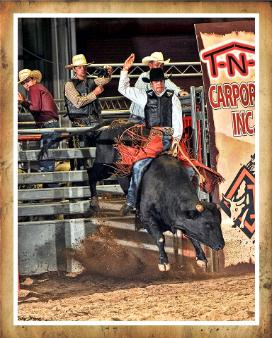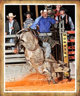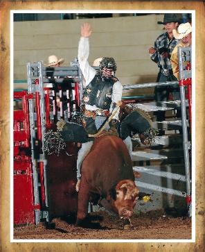 | Rowdy Rice and Jay Miller at the 2010 PBBA Aged Event Finals at Clemson University, Clemson, SC January 2011. Thanks to both of these "real" cowboys for always being willing to test our bulls! |